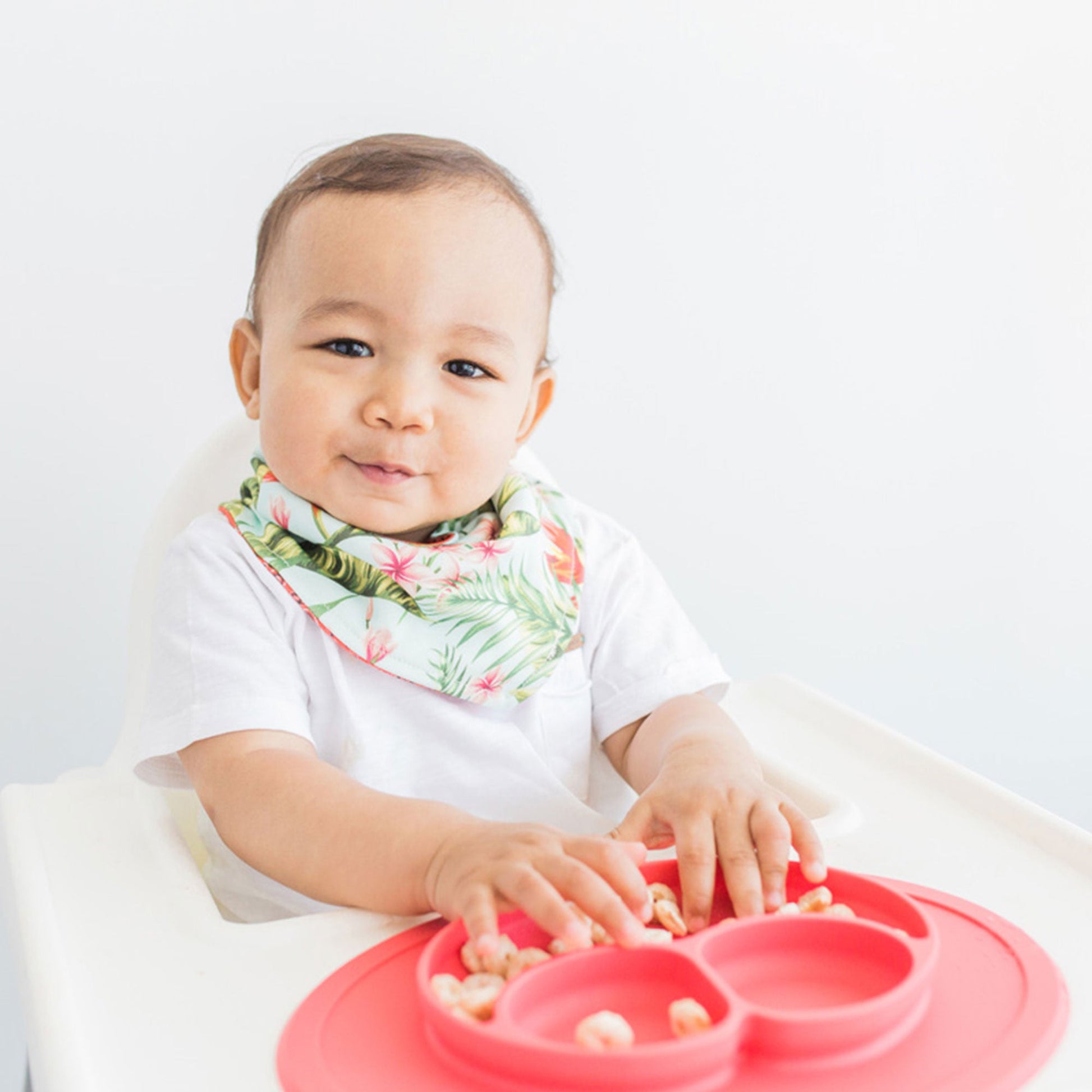 The Mini Mat is ezpz's top-selling mat, and it is a great mealtime solution for in-home use and travel. The Mini Mat is an all-in-one placemat + plate that suctions to the table. The mat’s stable base reduces tipped bowls / plates and helps infants + toddlers learn to self-feed.