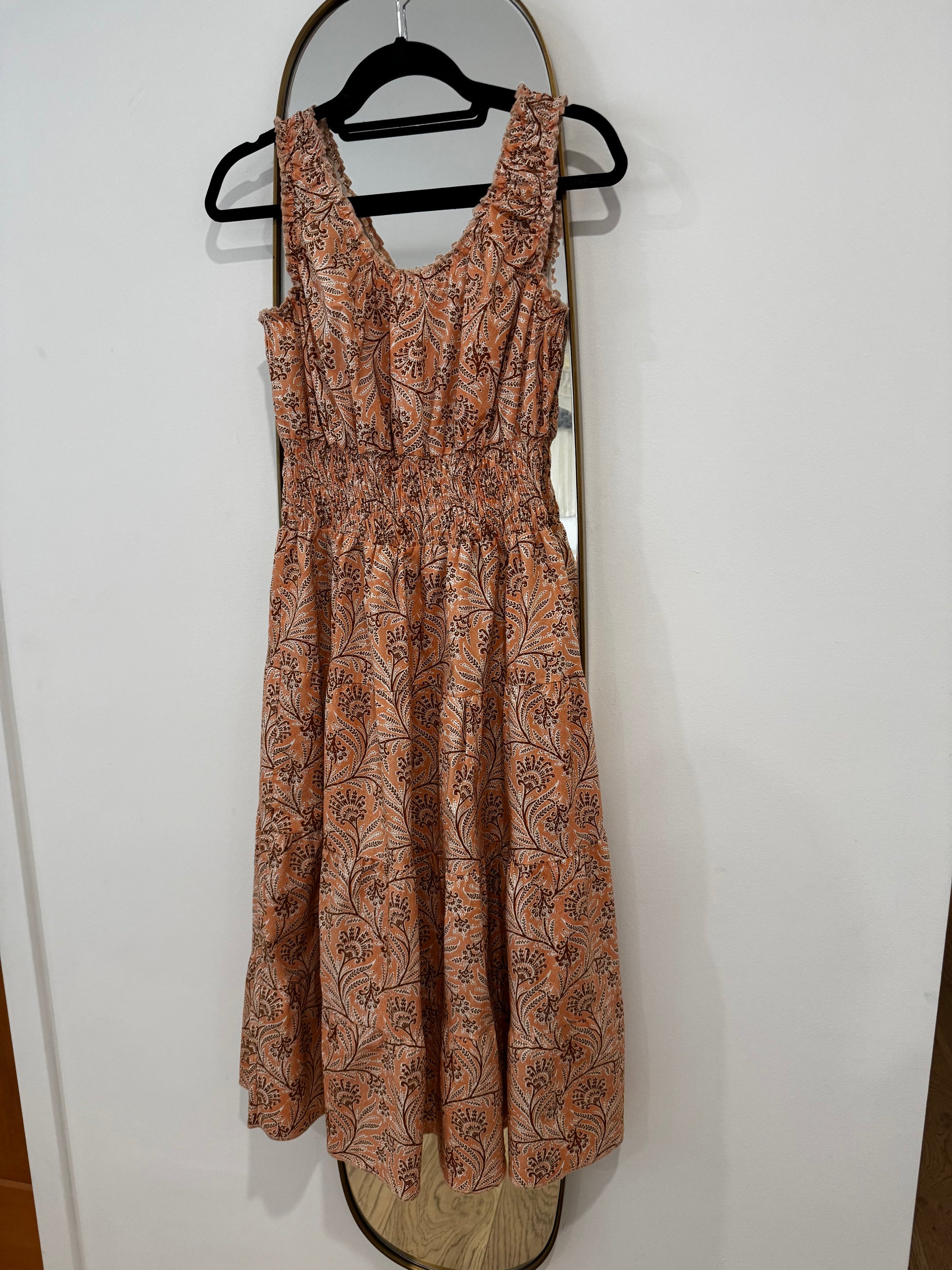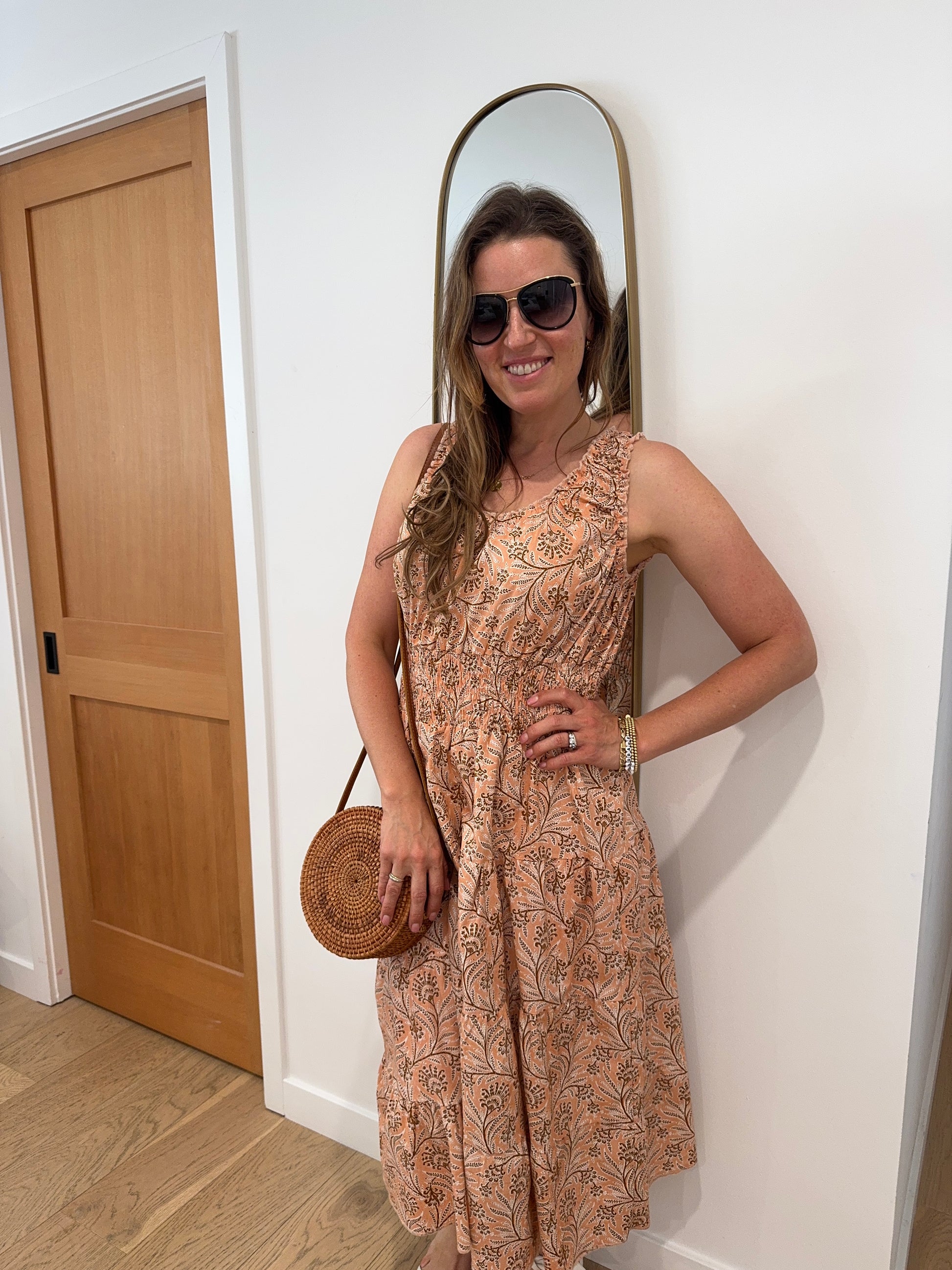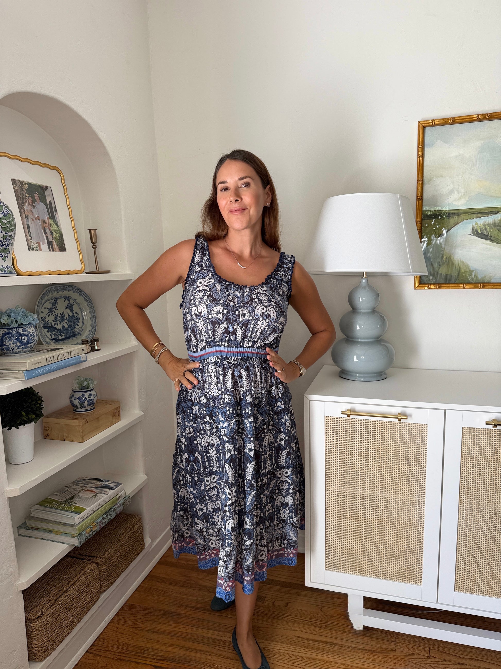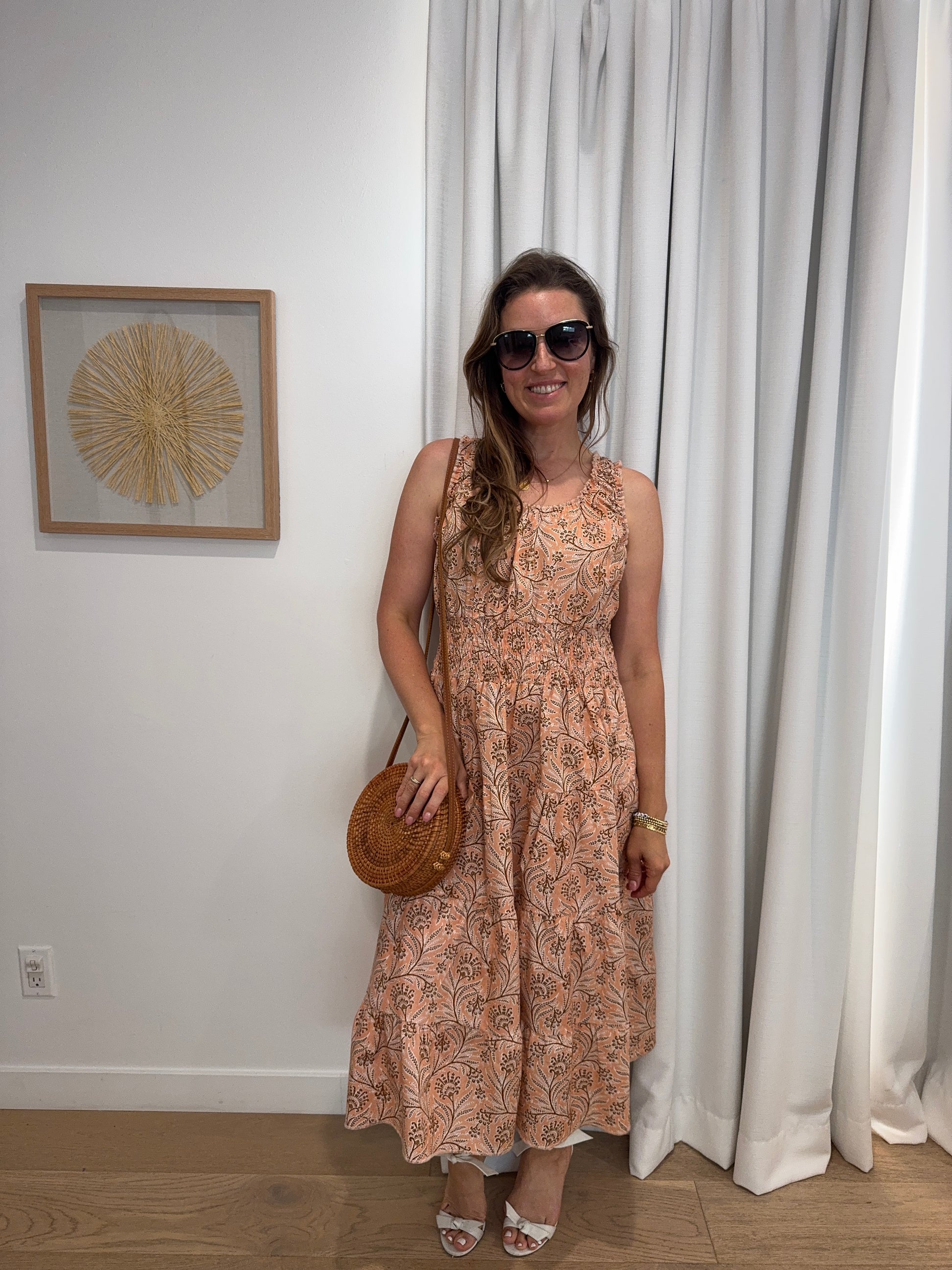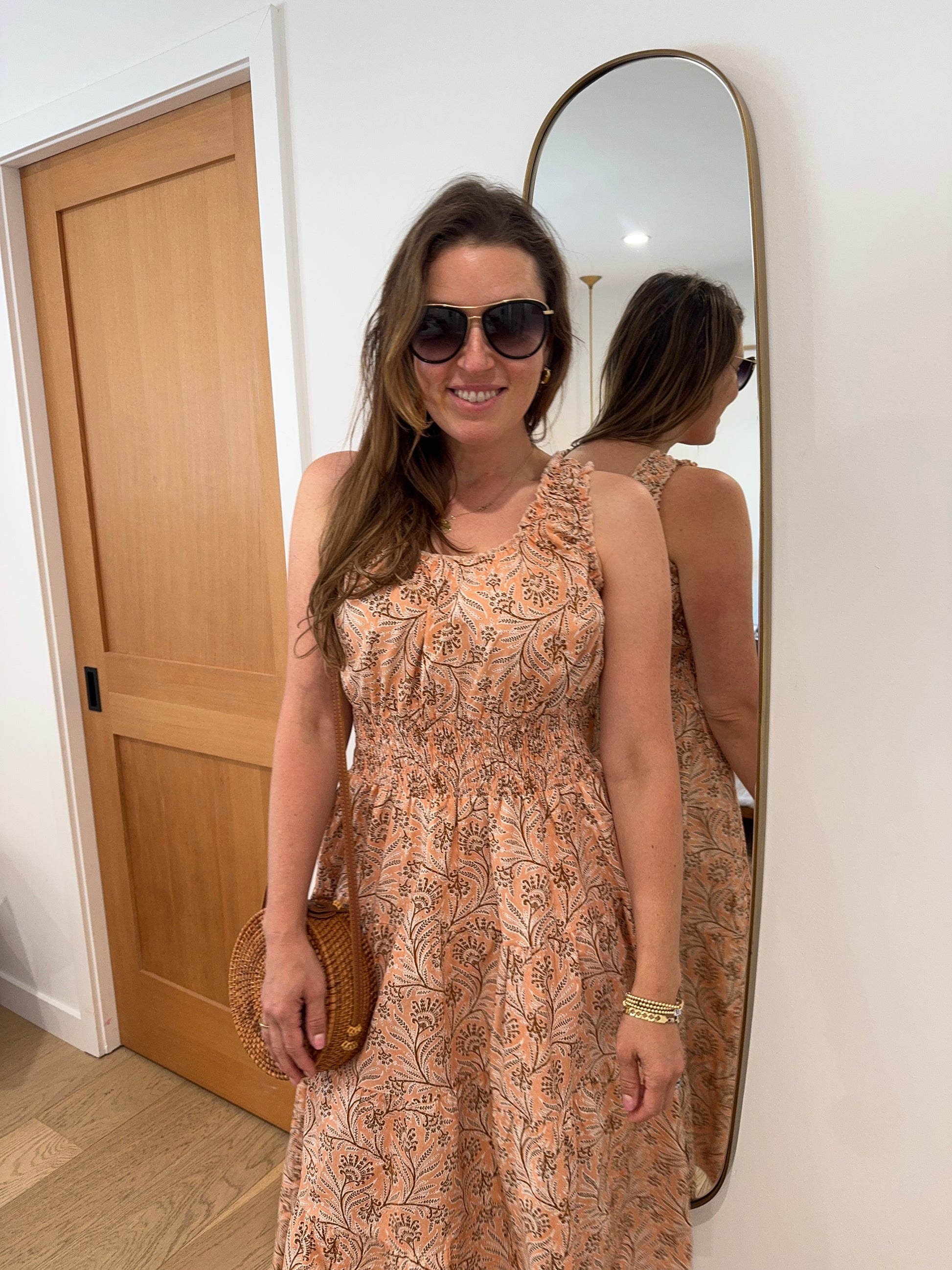 Made for busy mornings, weekend plans, and everything in between, this is the dress that works as hard as you do. The smocked bodice creates a flattering shape that moves with you—no pinching, no fuss—and the wide straps keep it comfortably bra-friendly. Finished with a tiered skirt and soft ruffle trim, it’s romantic without being fussy.
